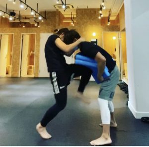 (MASAYAを膝蹴りしているわけではありません!!キックボクシングの練習です!!)