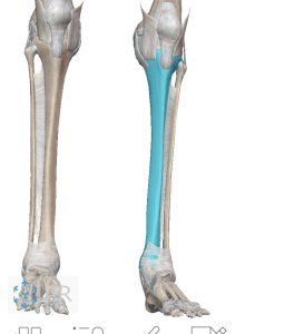 すねにある2つの骨の内側のもので、下腿部の唯一体重を支える骨です。体重を支える骨であるため、この骨を負傷すると歩行などが困難になります。内側面は足首付近で内果になります。