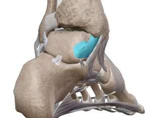 主な役割:足首を伸ばした(底屈)時にピンと張る役割をします。足首を伸ばした(底屈)時の内内側に捻ってしまう動きを止めてくれています。また脛骨に対して、距骨が前方行にずれることも止めてくれています。