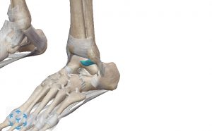 脛骨、腓骨、踵骨の間にある骨です。一番の役割は足と下腿を繋げることで、足首から下腿に体重がしっかりと伝えることです。それによりバランスを取りつつも歩行(歩く動作)を可能にしています。