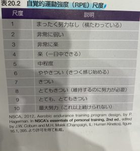 自覚的運動強度によって1〜10の10段階で段階づけをします。