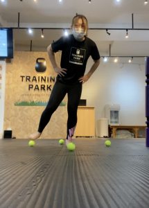片足で立ち何秒間耐えられるかや、重りを持ってバランスを崩さないように行うトレーニングです!