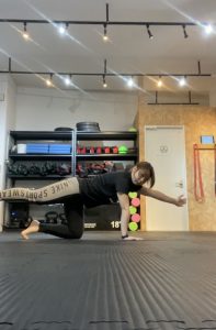 3そのまま膝と肘を対角線状の手足で曲げて伸ばします!